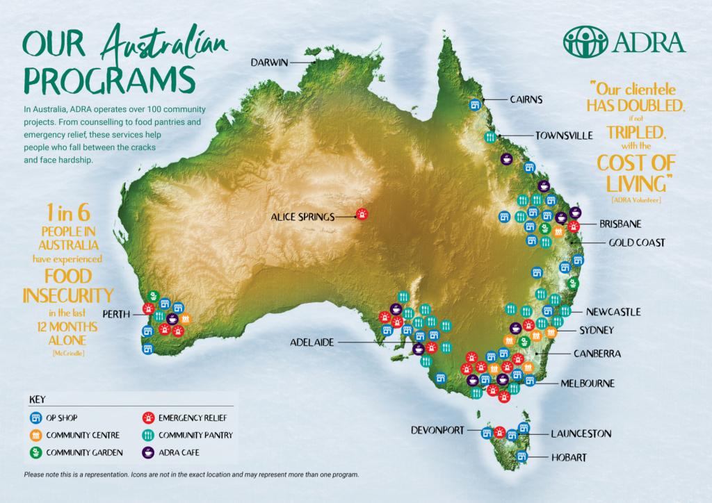 The Adventist Development and Relief Agency (ADRA) is the official humanitarian agency of the Seventh-day Adventist Church. ADRA Australia works as part of the global ADRA network, which