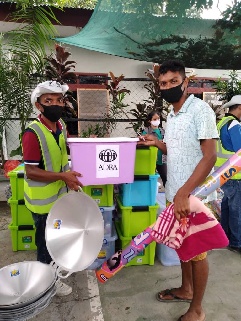 Then, on 17-18 April 2021, ADRA Timor-Leste, in cooperation with the Government of Timor-Leste, in particular the Secretary of State Civil Protection, Cruz Vermelha Timor-Leste (CVTL) and Australian Humanitarian Partnership (AHP), supported the families affected by the flood at Aldeia 12 de Outubro (Tasi Tolu) Suco Comoro. A total of 600 households (approximately 3,000 people) received kitchen sets and dignity kits.