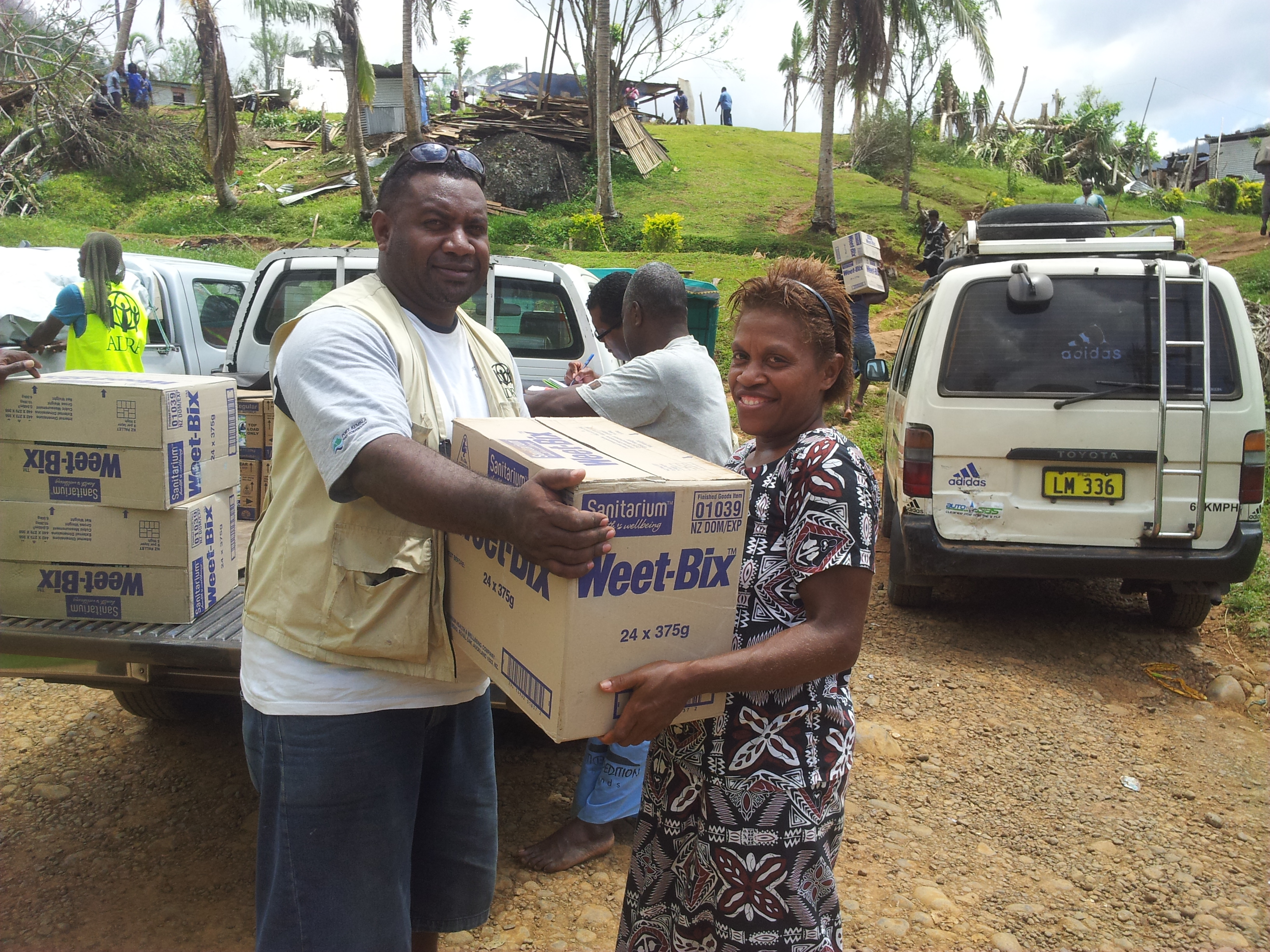 The Adventist Development and Relief Agency (ADRA) has partnered with Sanitarium Health and Wellbeing to deliver more food aid to hungry communities following Cyclone Winston in Fiji. Boxes of Weet-Bix and So Good were donated by Sanitarium for ADRA to deliver to people most in need. More than 620 families received packs of Weet-Bix and So Good soy milk. In total, 2268 cartons of So Good and 3568 packets of Weet-Bix were distributed.