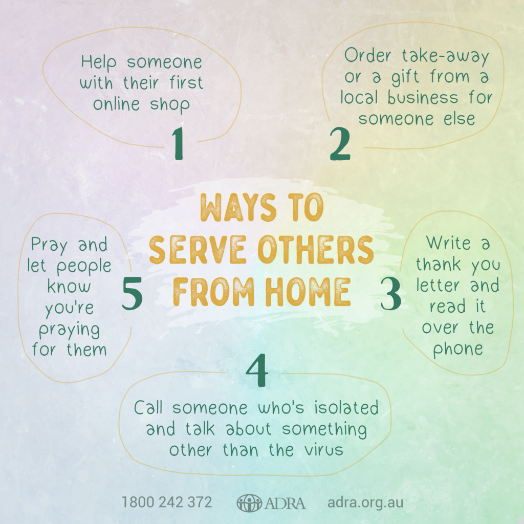 It is my hope that you are staying safe and well in these uncertain times. In 2020, we shared the below ways to serve your community during lockdown. I thought I would take this opportunity to share it again, so that we may be a blessing to others during this difficult time.
