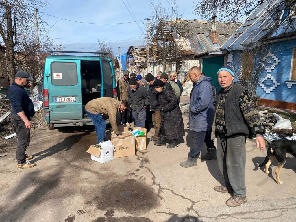 Distribution of humanitarian aid in the town of Nieżyn in the Chernihowski region of Ukraine.