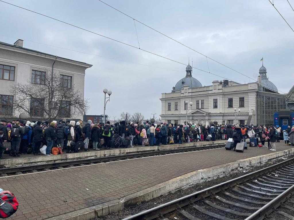 “I just want to share with you a short video that we received overnight from just inside the border, just a few kilometres from here inside Ukraine, where people, thousands of people, have queued overnight for more than 20 hours to this morning to get across the border into Poland in these very cold conditions.”