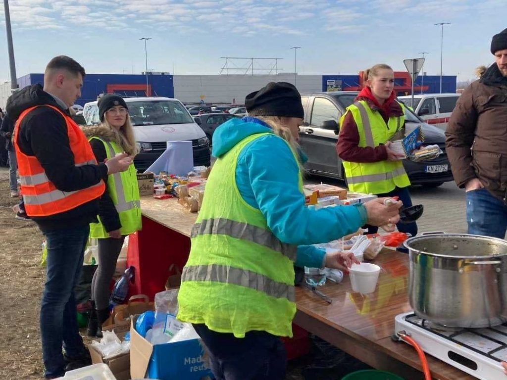Refugees who decide to seek safety outside of Ukraine are welcomed by ADRA teams at the borders. On Sunday, ADRA teams in Poland provided food and welcoming packages.