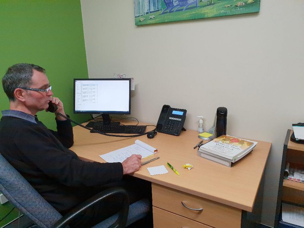 John Creswell, conducting over-the-phone counselling sessions