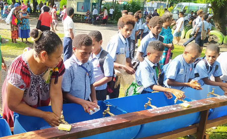 The ADRA Church Partnership Program (CPP) in PNG has been able to help ten schools in the Morobe Province by providing ten handwashing stations which have benefited 5,947 students and teachers. These handwashing stations were made possible by the 45 plastic drums donated by Laga Industry Company, the ADRA WASH program and the carpentry department of the Morobe mission of the Seventh-day Adventist Church.