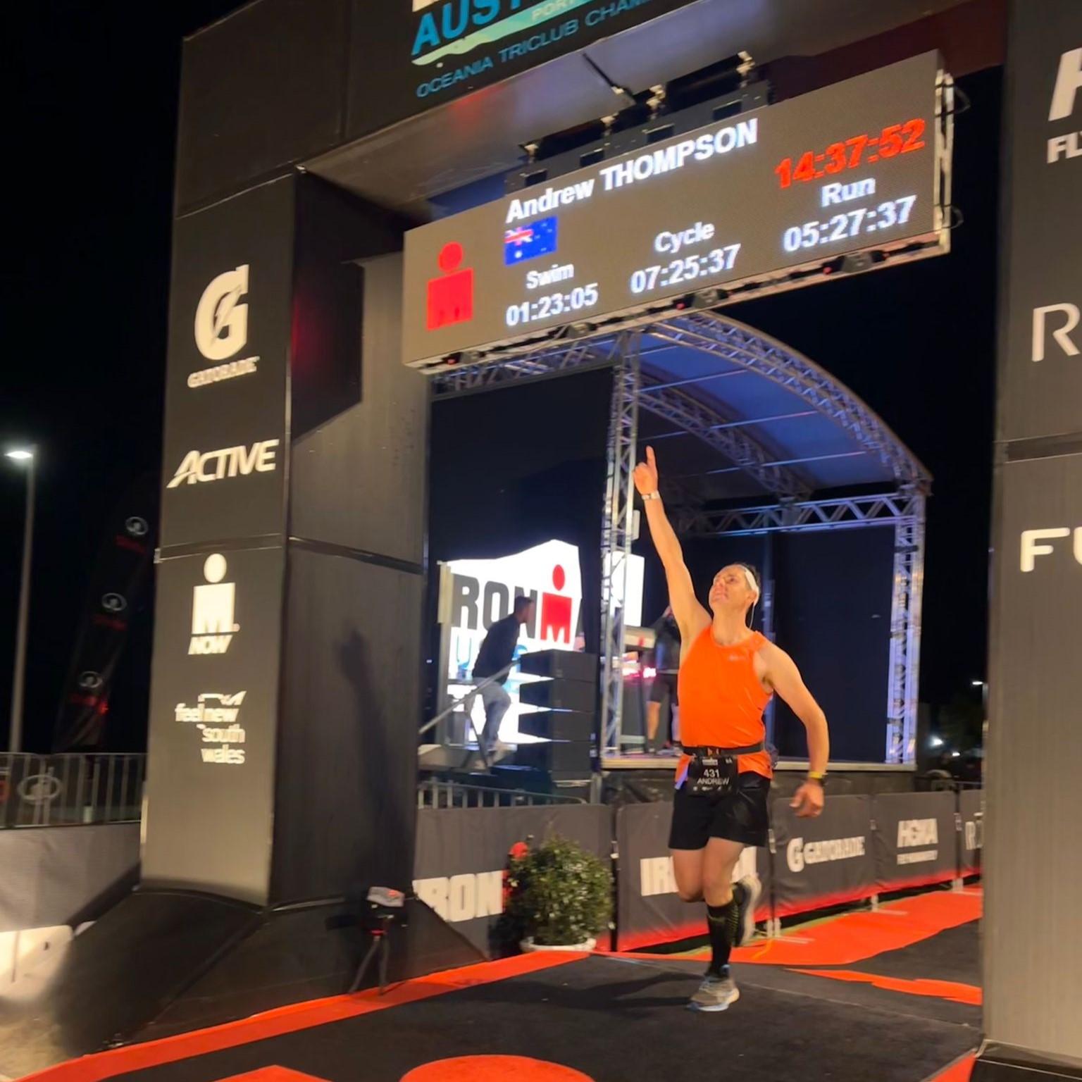 A full-distance Ironman Triathlon is a 3.8km swim followed by a 180km cycle then finishing with a full 42.2km marathon run. On May 7, Andrew completed the Ironman Triathlon in a time of just over 14 hours and 37 minutes!