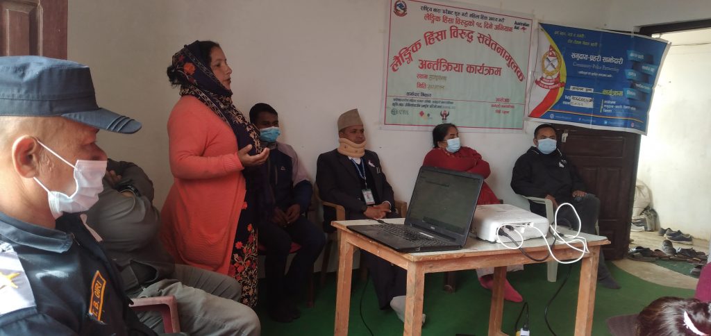 “I learned and understand them about legal provision against women and domestic violence,” Gauri says. “The training helped me to report and to resolve violence cases tactfully.”