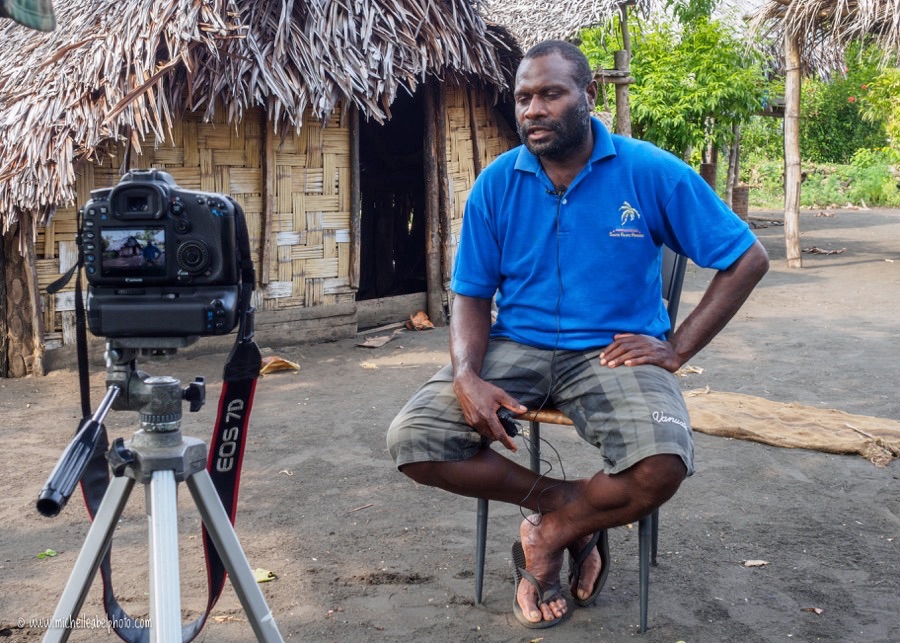 John standing food The village is peaceful, washing drying in the afternoon sun. It’s too hot to do anything much other than find a place in the shade, hopefully with a breeze. John Andre is sitting on a chair outside his kitchen. He looks a little uncomfortable, as he has a lapel mike attached to his shirt. He is facing a camera on a tripod, the cameraman, an ADRA trainer, myself and three guys who came along with us in the truck. I am traveling with an ADRA team around South East Ambrym Island in Vanuatu. It’s been almost a year since Cyclone Pam, the strongest cyclone in Vanuatu’s history, devastated many communities here. South East Ambrym was one of the locations that ADRA worked with in the weeks after the disaster. My role here today is to talk to community members about their experiences in Cyclone Pam, and their perceptions of how ADRA worked with them after Cyclone Pam. In this village I am not doing any interviews or facilitating any meetings. We are here because of a story that we were told down at the beach when asking around for good people to interview on camera. As I am not on duty I am taking atmospheric shots of red hibiscus nodding in the sun, faded dresses gently blowing on the line. I can understand about 80% of Bislama (one of the main languages in Vanuatu), so I am only partly paying attention to John as he starts to tell his story, but soon I am standing alongside the cameraman, riveted as he talks into the camera. He doesn’t need any prompting. There are no stops and starts or embarrassing mumbles. He speaks quickly and directly about that night of 13 March 2015. He had heard warnings of a cyclone over the local radio early in the day. During the afternoon all radio broadcasts went silent. As the winds started to build he gathered his family close and they discussed where to shelter. Each village should identify a place for evacuation during a cyclone. Many villages chose their church or school. John’s village didn’t have any strong permanent buildings like that. He decided that their kitchen would have to do. It is built low to the ground, with natural woven walls, and a thick thatched roof. He gathered his family inside and closed the door. As the winds grew stronger John was concerned about other families in his community, so he went outside and went from house to house to check if everyone was feeling safe. Many families were terrified, so John suggested they join his family. In every village there are strong cultural obligations about not being too close to certain relatives, or even looking them in the eye. As more and more people came into his kitchen John told them that there was a time for “tambu kastom” but during a cyclone respecting traditions were not possible. They all had to shelter together. Eventually John had 72 people inside his kitchen! Huddled in so close they could barely move, they clung to each other as the 350 kilometre per hour winds howled around them, blowing their homes apart, striping the trees of leaves and branches, and destroying their gardens. John camera sitting They all stayed inside until morning, when the winds dropped. John lead them all in a prayer of thanks that they survived the night, then he decided to go outside and see if he could find any food. He had been thinking about his cow all night. He knew that the cow would give them all something to eat until hopefully help arrived from the National Disaster office, but he would hate to have to kill the cow himself. As he made his way through the debris he saw that his cow had been killed by a falling coconut palm, so he breathed a prayer of thanks (he joked to the camera that “God killed the cow for me!”) and together the 72 people sheltering in his kitchen were able to make a fire and eat the beef with scavenged vegetables that had been ready to harvest when the cyclone hit. I asked him how long it was before they received any outside help. John thought to himself for a few minutes to be sure, revisiting memories of a time so hard for his community that I can barely imagine it. “It was ADRA,” he said, “ADRA was the first organisation that came to help us.” Cyclone Pam destroyed Vanuatu’s mobile communications infrastructure. For two weeks after the cyclone many communities had no contact with the outside world. They didn’t know the extent of the cyclone’s damage, they didn’t know if the capital Port Vila survived. They didn’t know if any help was coming at all. ADRA was able to reach South East Ambrym with a shipment of food aid, household water filtration kits, hygiene kits, and tools for reconstruction three weeks after Cyclone Pam. Over the next two months ADRA helped with two more distributions of food aid while communities like John’s were waiting for the first harvest from their restored gardens. The food aid was just enough – a mother in the community tells me that when their first crops were ready they still had a little rice left from the ADRA food packages. John’s kitchen has now become a local legend. They still use it as a kitchen, and when I stick my head inside and squint through the dusty gloom I try to imagine 72 people shivering in front of me, unsure if in the next minute the wildest winds of their lifetime would blow them to the volcano crater in the centre of Ambrym. Today the kitchen is as it should be, with pots and pans sitting quietly in their place in a dirt yard swept spotless. The village has been replanted with flowering plants that are now in bloom, and many of the smaller trees have leaves again. It will take longer for the bigger trees to return. Almost 12 months after Cyclone Pam many homes still have tarpaulins distributed by ADRA spread over the damaged thatched roofs, because the traditional material they used for thatch grows on a type of tree that was mostly destroyed during the cyclone, and it will take another year or two before they can harvest the leaves to repair the thatch on most build
