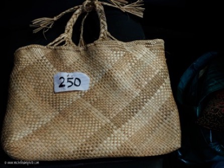 Neslyn is a young mum. She steps forward with sassy confidence. Her English skills are good enough that she answers my questions directly in Bislama, without waiting for translation. With the murmured support of the other mothers she tells me about the days after Cyclone Pam, when entire families got sick with diahorrea and skin sores. They thought it was something to do with the water supply, but there is no qualified health staff at the local clinic, so they really had no idea. When ADRA arrived three weeks after Cyclone Pam each family received an assistance package. One of the items included was a simple water filter. The families started to filter their drinking water and the sickness affecting them went away. The women in the group nodded as Neslyn then went on to list every item that was in the aid package distributed by ADRA. She listed the types of food, the tools for fixing their homes, the spade and bush knife for restoring their gardens. “Here, look at this!” she points to a pile of giant purple sweet potato on the ground, “This is the first harvest of sweet potato that we planted after Cyclone Pam!” The women around all share her happiness at the successful crop, and two prime specimens are held up for me to take a photo. I ask about the gardening training that ADRA provided. They are all gardeners here, and a mutter sweeps through the crowd. Neslyn explains that only men were chosen by her community to do the training, but they did share information with their wives after the training. Together we all bristle at the indignity of that, and I make a note in my book to advise that maybe separate trainings for women would be beneficial in the future (funny thing was when I checked the training participation more women than men actually attended!). Neslyn then laughs at my squeamishness around the live crabs. I ask how the cyclone affected the food they ate from the sea. “Everything in the salt water died during the cyclone,” she says. “The water was spoiled and everything was dead.” It took several months before the sea life recovered enough for them to be able to catch anything. So what did they eat, I ask? Neslyn explained how they dug for wild yams, ate the coconuts that had fallen to the ground in the cyclone, and harvested what they could from their destroyed garden crops. “The food from ADRA came just in time,” she says. After the cyclone mobile communications were knocked out for two weeks. It took that time for the national government to do assessments of need and allocate areas to NGOs like ADRA for response. ADRA’s food aid arrived three weeks after Cyclone Pam, sent by ship and carried ashore at the only beach in the area where ships can anchor safely, before being driven in older cars along the single rough 4WD track that connects the communities here. But Neslyn had no complaints about the delay, only gratitude for the three food distributions each family received. “When our gardens were finally ready to give us some harvest,” she said, “We still had some rice left from ADRA! So it was the right amount of food!” We were expected at another community down the road, so it was time to say goodbye. I wandered the market stall again and chose my young coconut. I also saw a lovely woven bag. I purchased both and as my coconut was being opened for me (I don’t carry my own bush knife!) I asked who made the bag. Everyone point at Neslyn! She just smiled and waved us goodbye.