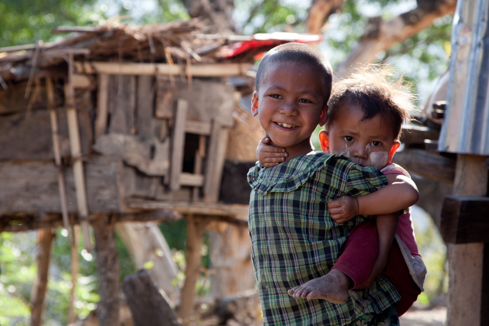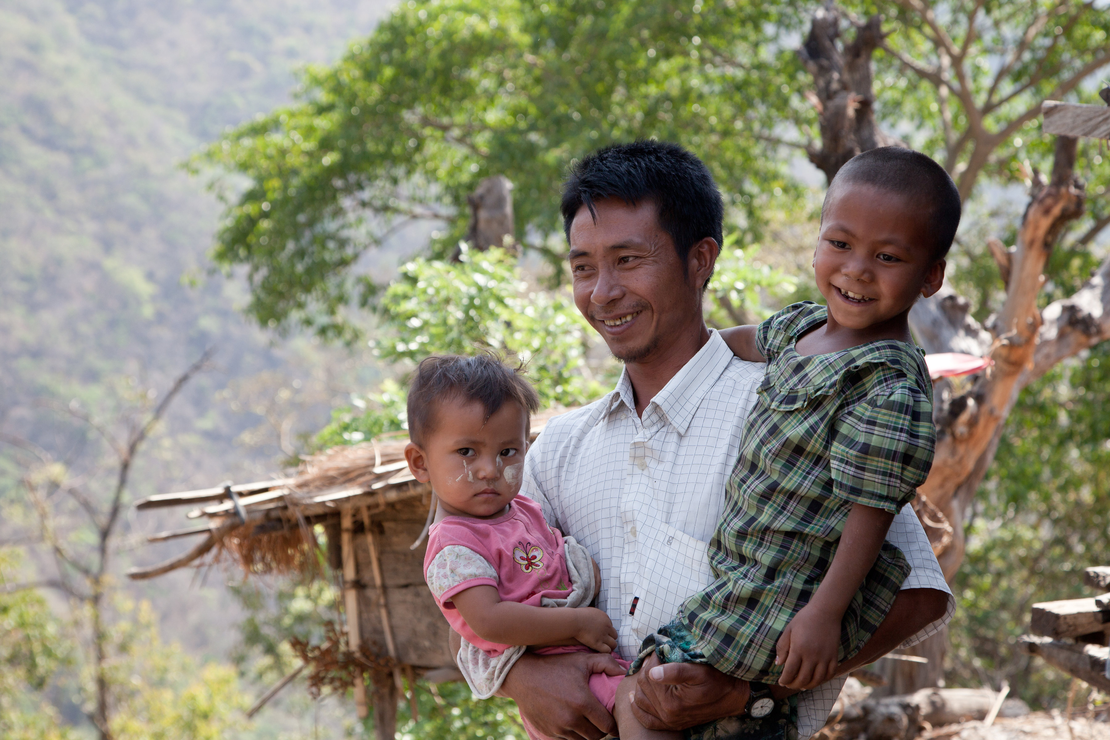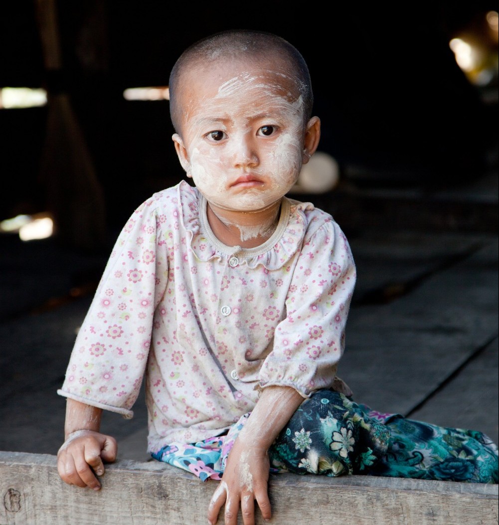There’s a stranger in her kitchen and three-year-old Meita doesn’t welcome the intrusion. Eating a bowl of rice with her mother and six sisters in their rugged kitchen, Meita’s round cheeks are painted with thanakha—pale yellow paste traditionally worn by women and girls in Myanmar (Burma). Her eyes are wide and she is wary of our presence.